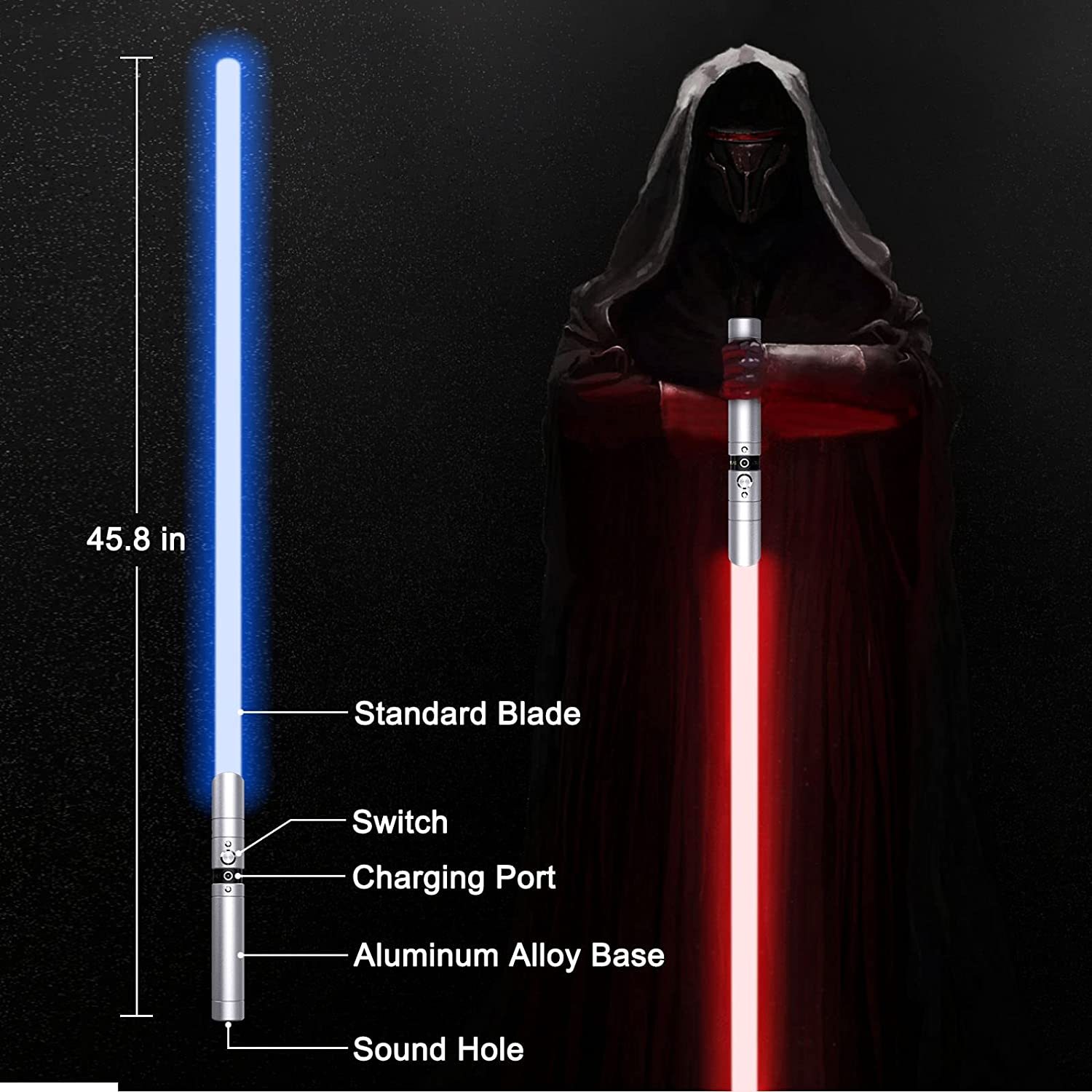 - 【Dueling Metal Light Saber】The Light FX Saber with RGB LED Bright Light and Motion Sensitive Sound. The Hilt is comfortable and smooth, made of aviation aluminum alloy.